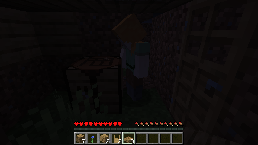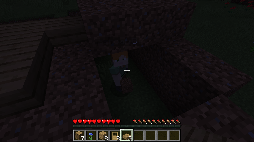 暗くなっていく中、手持ちの木と土でなんとかカベを作るぴょいん🐰((