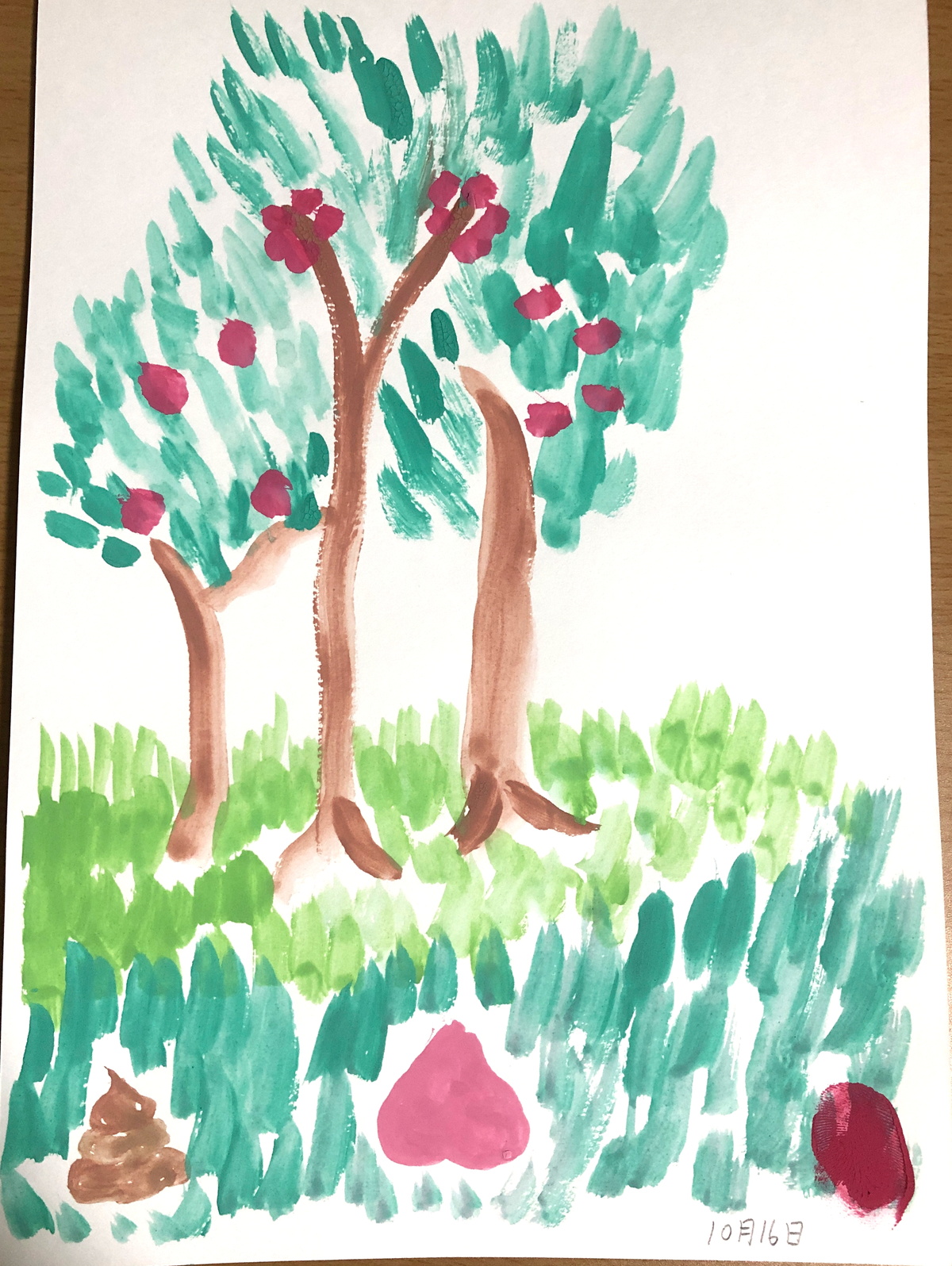 ぴょいんがダイソー絵具で描いた葉っぱとお花